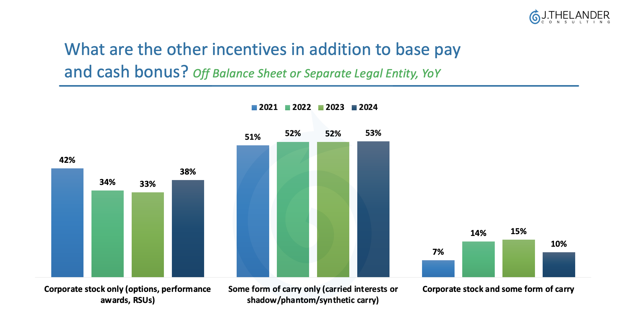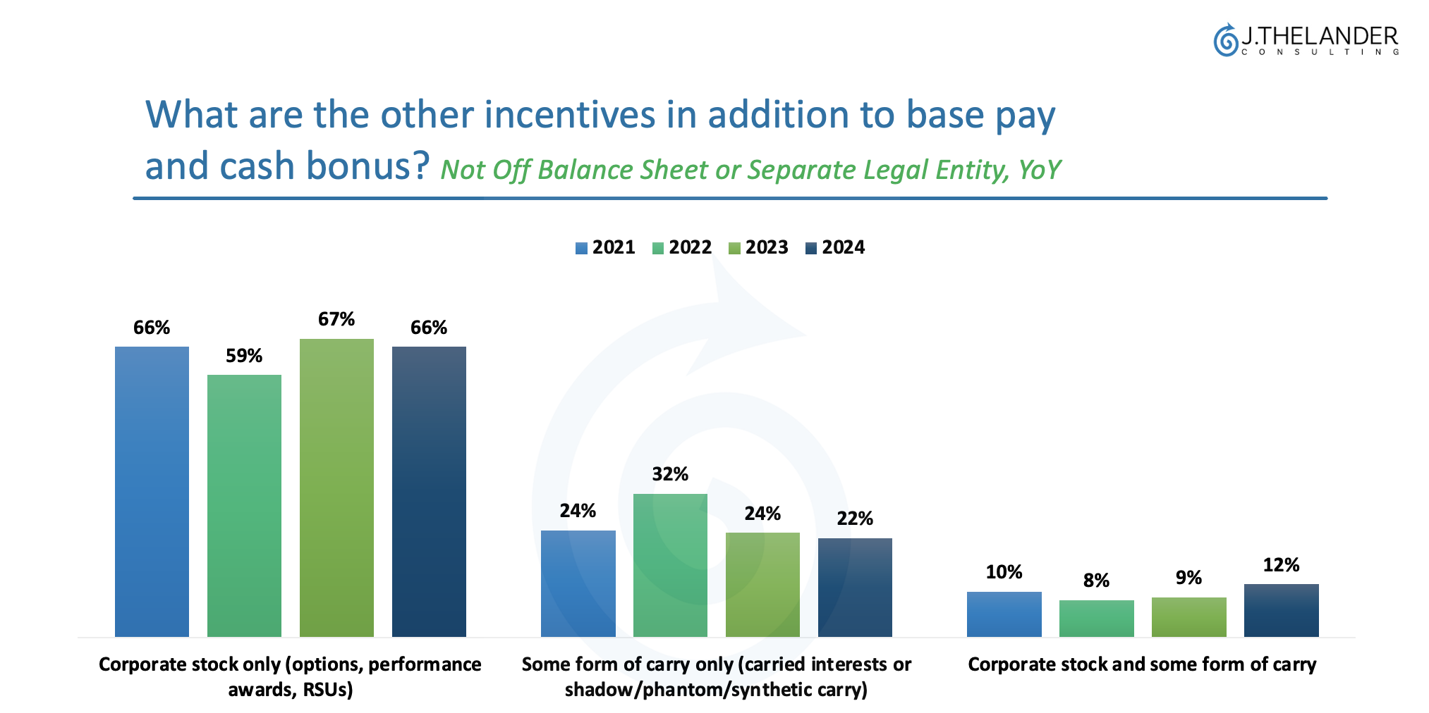 The webinar also touches on the benefits of incentive and why some are better than others. To summarize, corporate stock can be a valuable lever for employees because the vesting period is typically three to four years and is paid our every quarter and with additional payouts every quarter after that. This is much shorter than the typical vesting period for carried interest, which has increased towards 10 years on average.