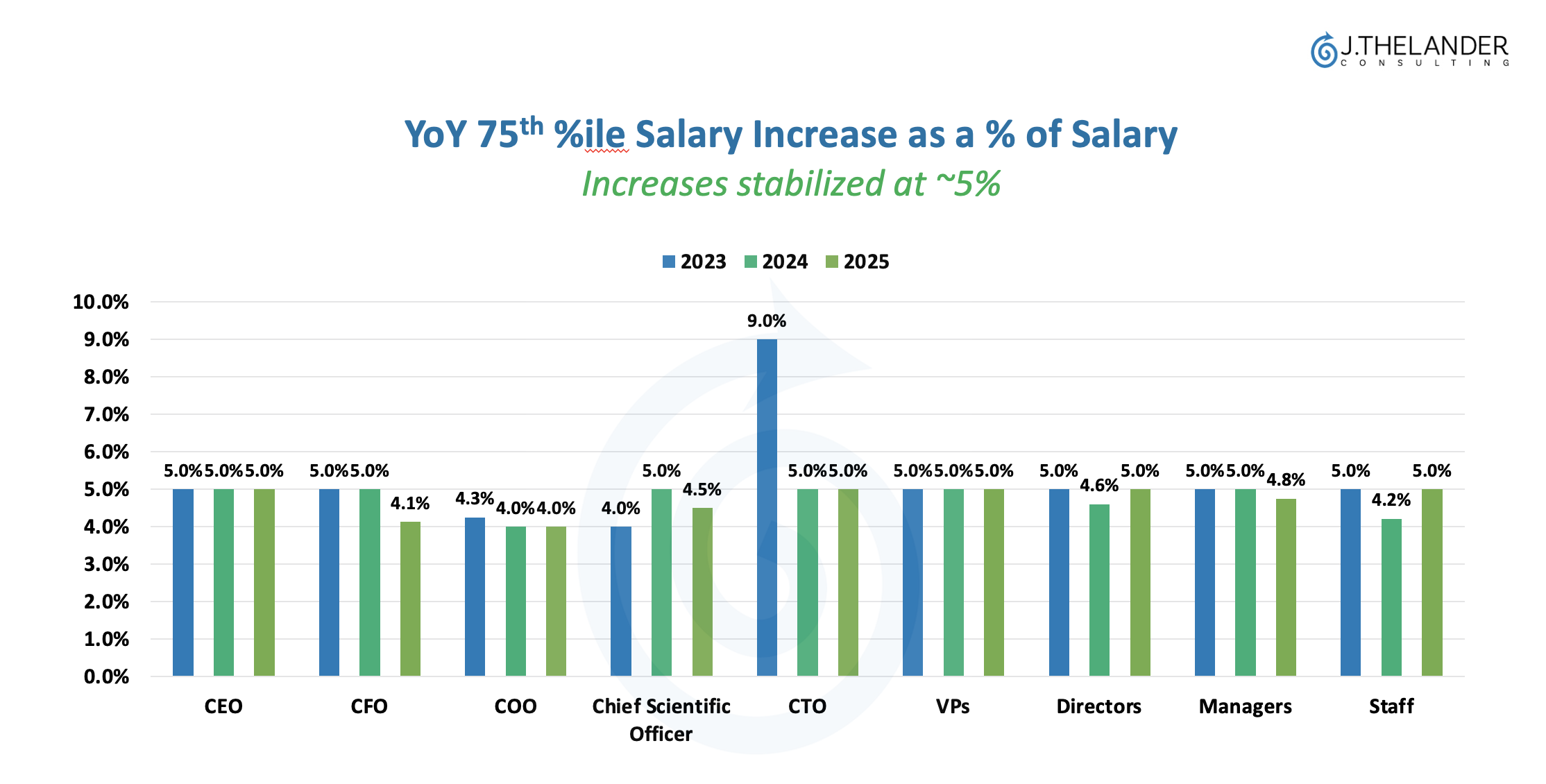 Directors and Staff-Level Employees saw a salary increase at the 75th percentile.
